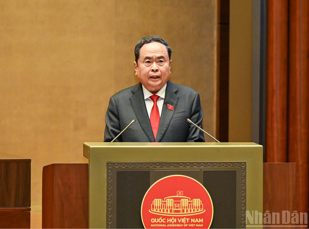 Thực hiện nghi lễ tuyên thệ tại Hội trường Diên Hồng, Nhà Quốc hội, dưới cờ đỏ sao vàng thiêng liêng của Tổ quốc, trước Quốc hội, đồng bào, cử tri cả nước, Chủ tịch Quốc hội Trần Thanh Mẫn tuyên thệ: “Tuyệt đối trung thành với Tổ quốc, với nhân dân, với Hiến pháp nước Cộng hòa xã hội Chủ nghĩa Việt Nam; nỗ lực phấn đấu, hoàn thành tốt nhiệm vụ được Đảng, Nhà nước và nhân dân giao phó”.