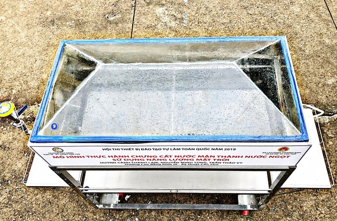 Không cần điện năng tốn kém, anh Lam tận dụng sức nóng tỏa ra từ mặt trời để làm nguồn năng lượng chính cho mô hình, giúp hạn chế chi phí cho người dân. Sản phẩm có hai bộ phận chính gồm khoang chưng cất và khung giá đỡ inox không gỉ.