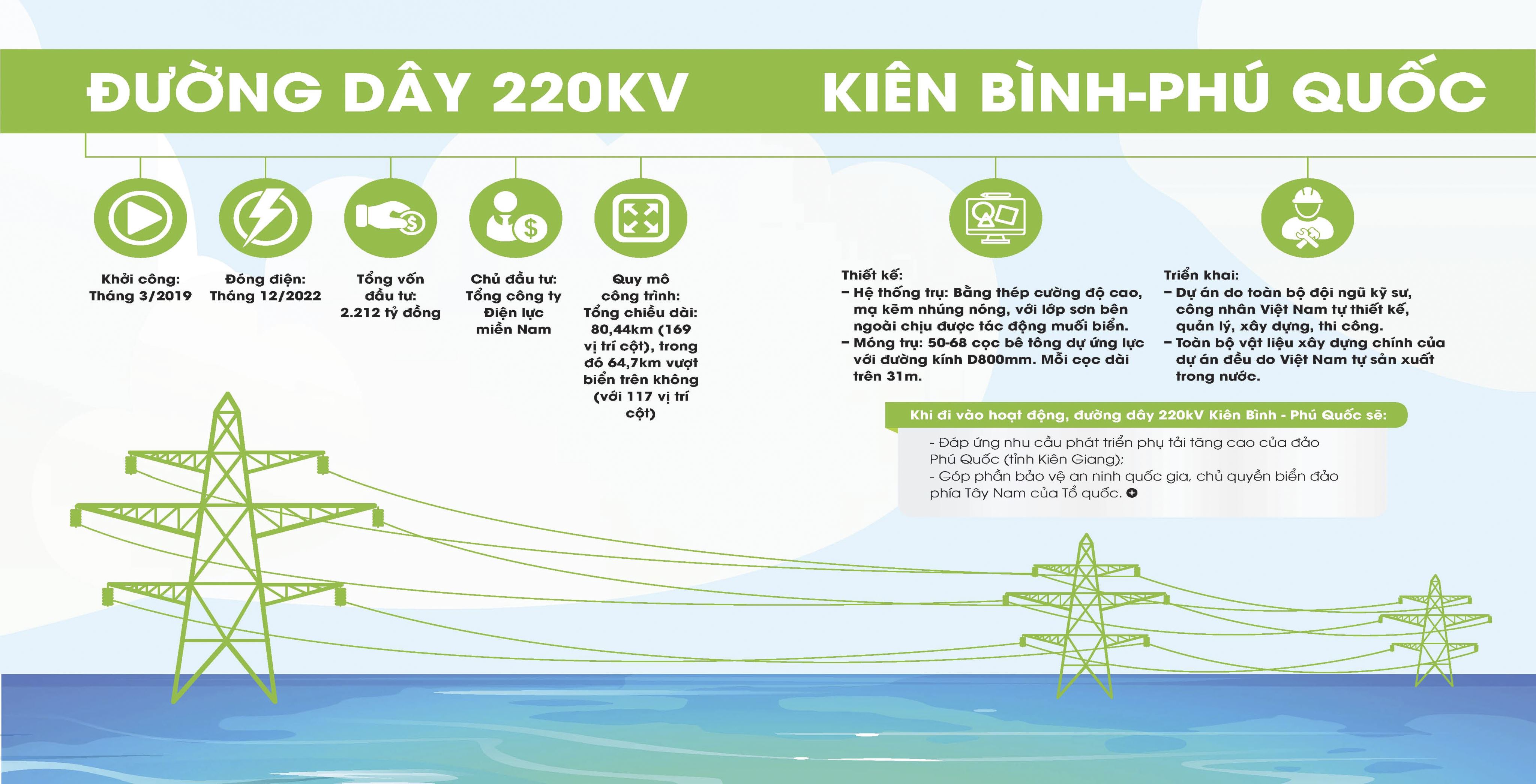 Đường dây 220kV Kiên Bình - Phú Quốc là đường dây 220kV vượt biển dài nhất Đông Nam Á tính đến thời điểm này.