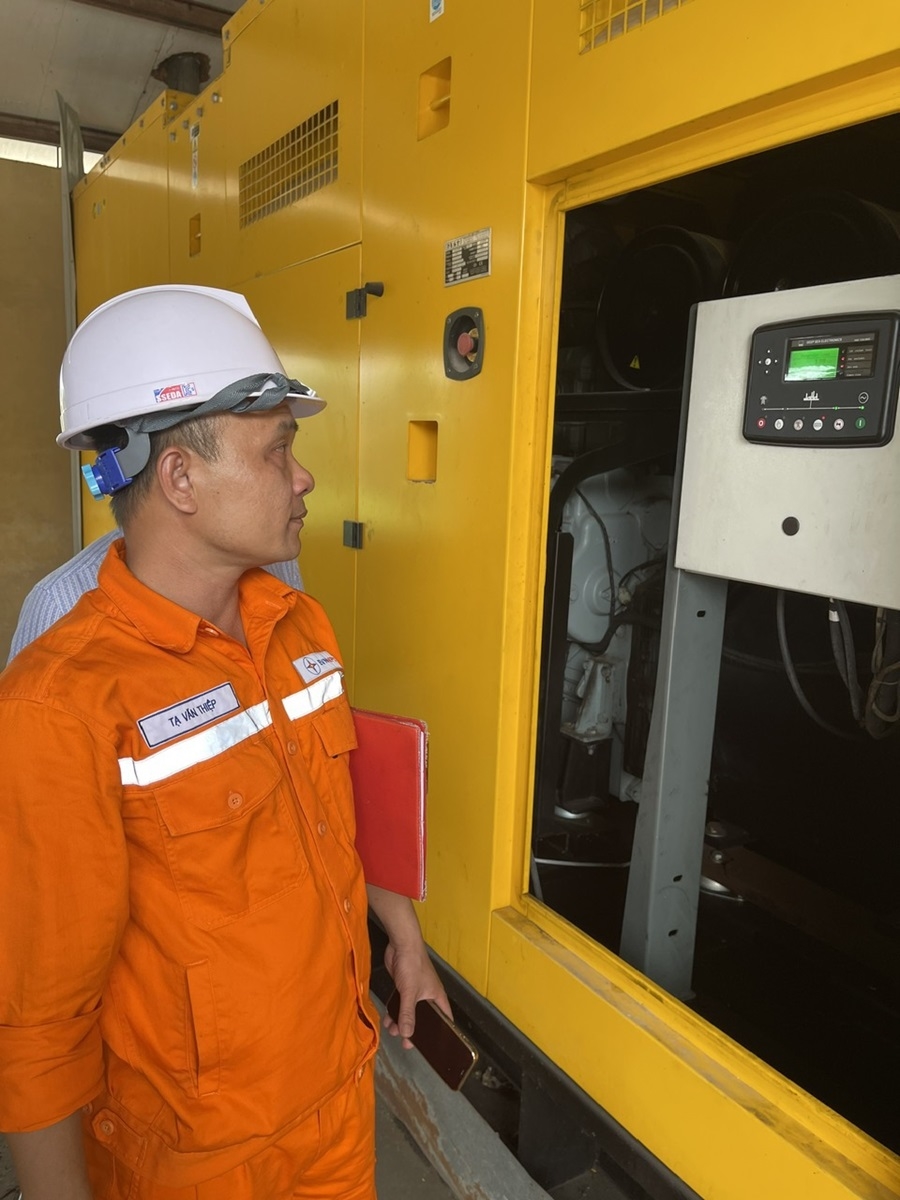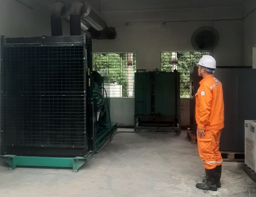 Công nhân Công ty điện lực Vĩnh Phúc kiểm tra khách hàng đang chạy máy phát Diesel tại Điện lực Phúc Yên