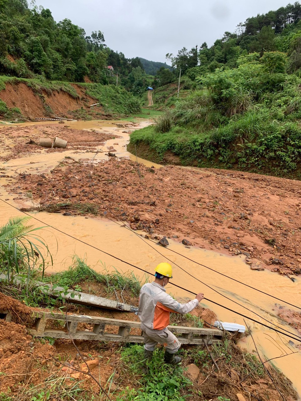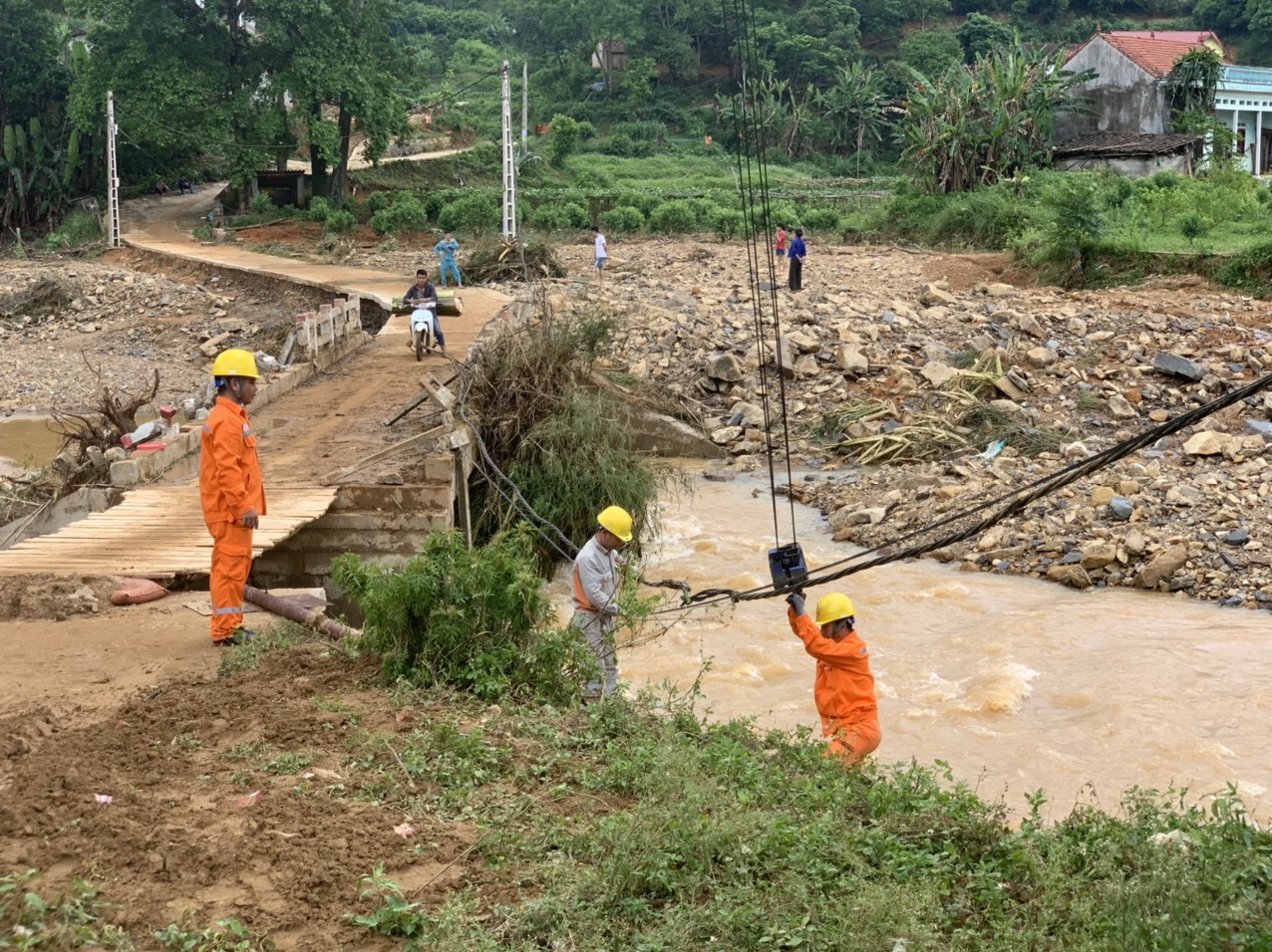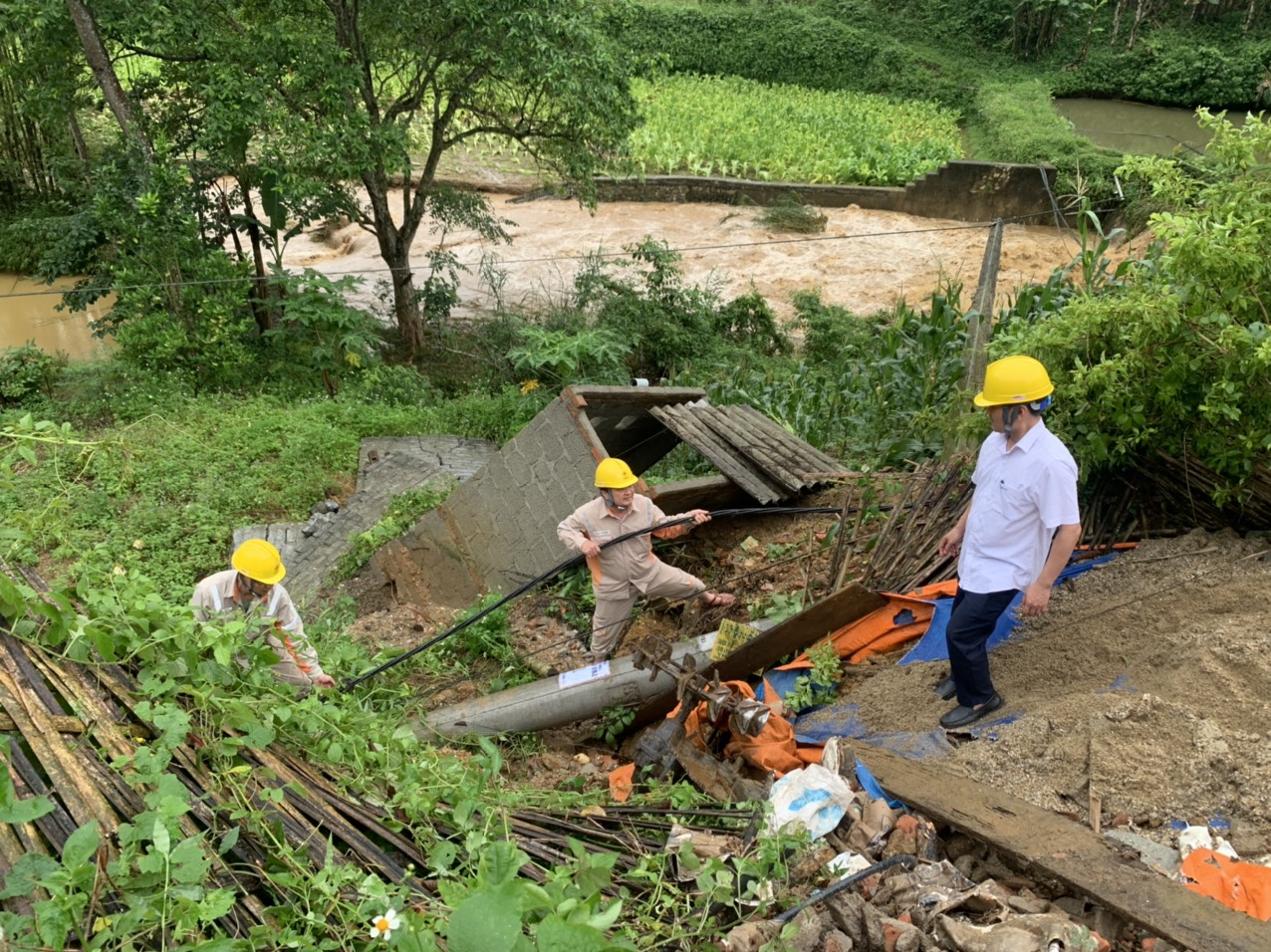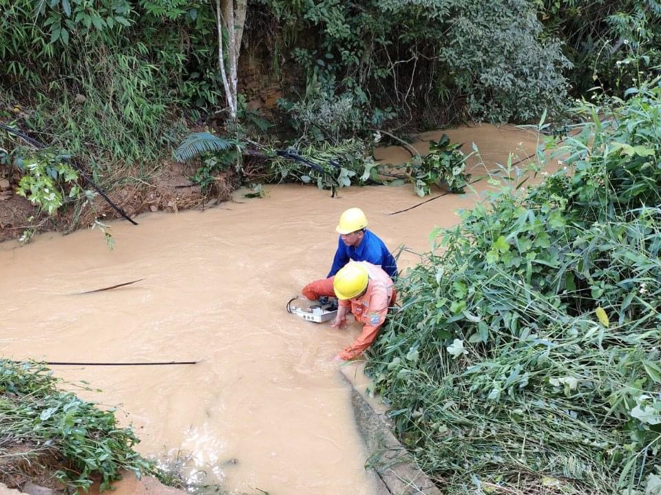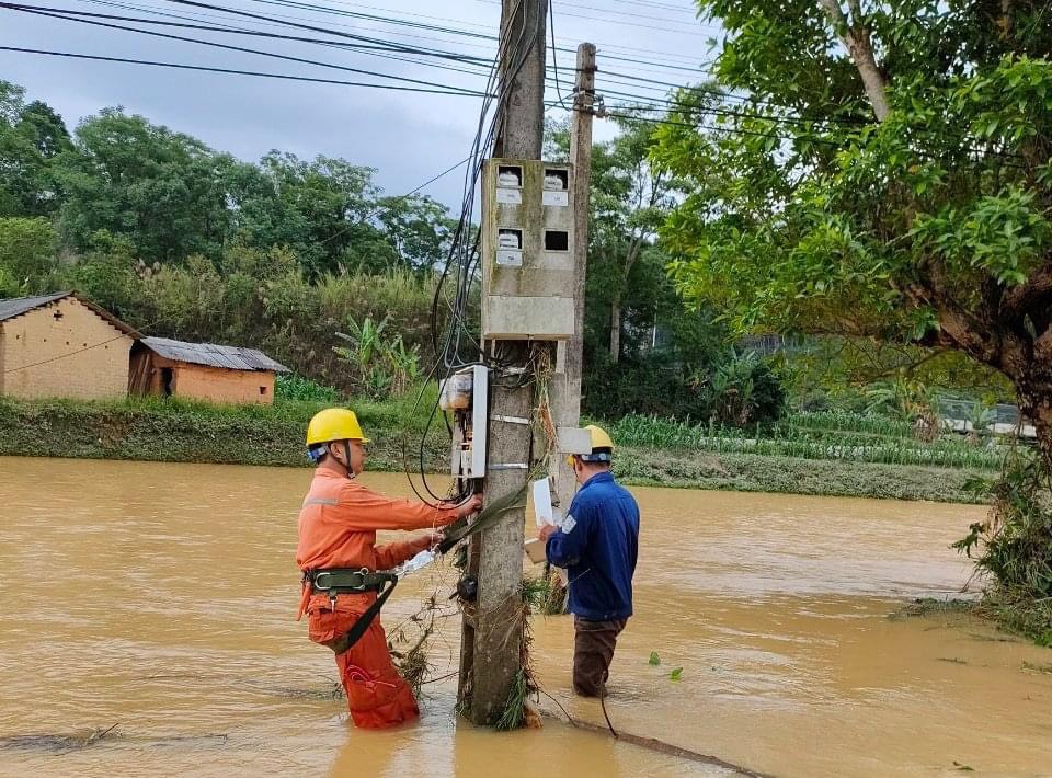 Nhân viên ngành điện nỗ lực khắc phục sự cố lưới điện do mưa giông, lũ lụt