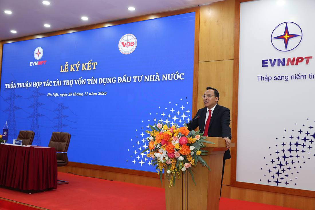 Phát biểu tại buổi lễ, Thứ trưởng Bộ Công Thương Nguyễn Hoàng Long nhấn mạnh: Lễ ký thỏa thuận hợp tác tài trợ vốn tín dụng đầu tư của Nhà nước giữa EVNNPT và VDB là dấu mốc quan trọng trong quan hệ hợp tác giữa hai bên, mở ra một giai đoạn hợp tác mới nhằm khai thác tốt nhất tiềm năng của mỗi bên. Sự hợp tác này sẽ giúp khơi thông nguồn vốn tín dụng đầu tư của Nhà nước theo quy định của Chính phủ, góp phần thúc đẩy phát triển kinh tế - xã hội của đất nước, nâng cao đời sống của nhân dân, tạo tiền đề cho các lĩnh vực sản xuất và đời sống.