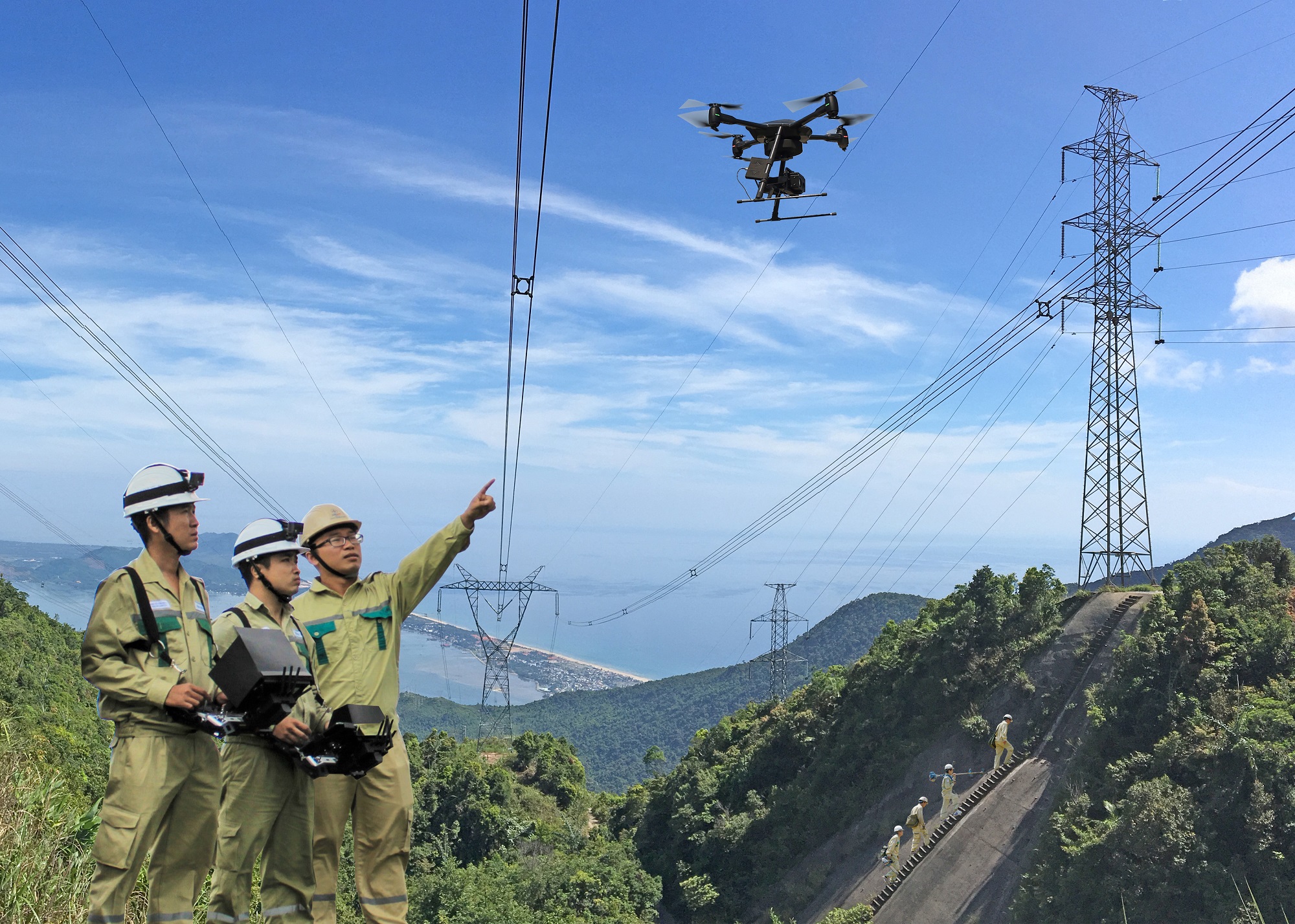 Kiểm tra đường dây 500kV bằng thiết bị bay không người lái