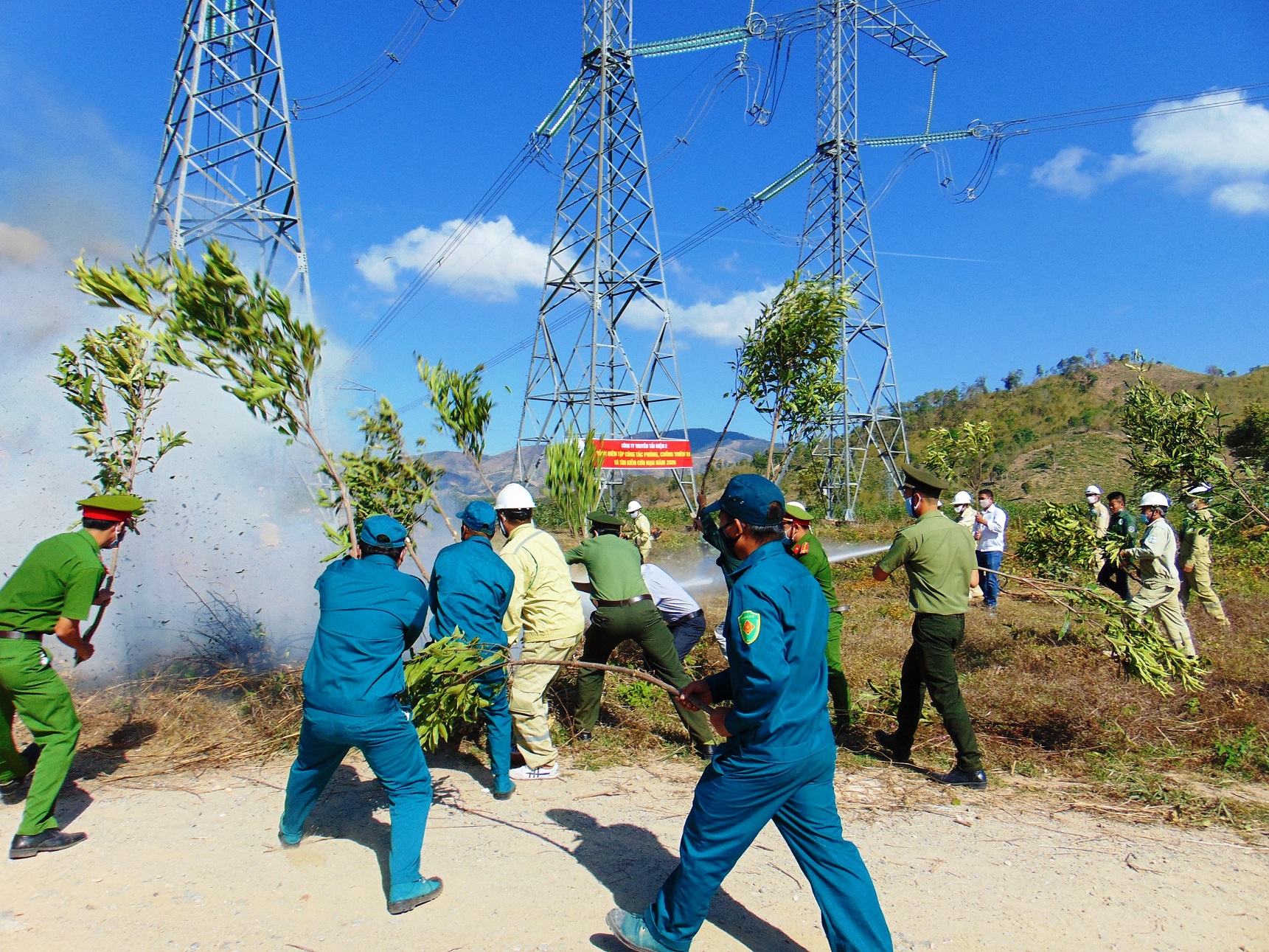 Diễn tập chữa cháy đảm bảo an toàn hệ thống truyền tải điện quốc gia