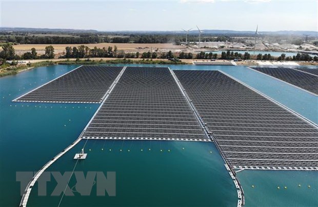 Nhà máy năng lượng Mặt Trời nổi đầu tiên tại thành phố miền Đông Nam Piolenc, Pháp. (Ảnh: AFP/TTXVN)