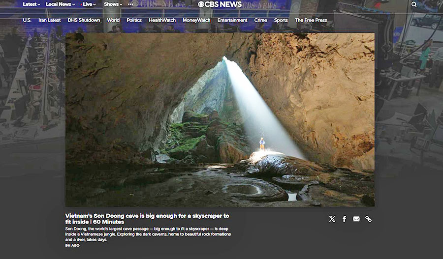 Hang Sơn Đoòng được giới thiệu trong chương trình truyền hình nổi tiếng “60 Minutes” của Đài CBS