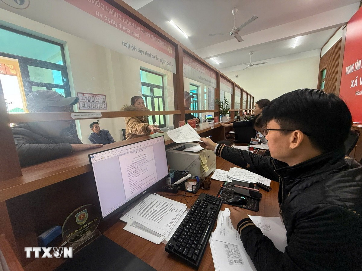 Cán bộ, nhân viên Trung tâm Phục vụ hành chính công phường Tô Hiệu, tỉnh Sơn La làm thủ tục hành chính cho người dân