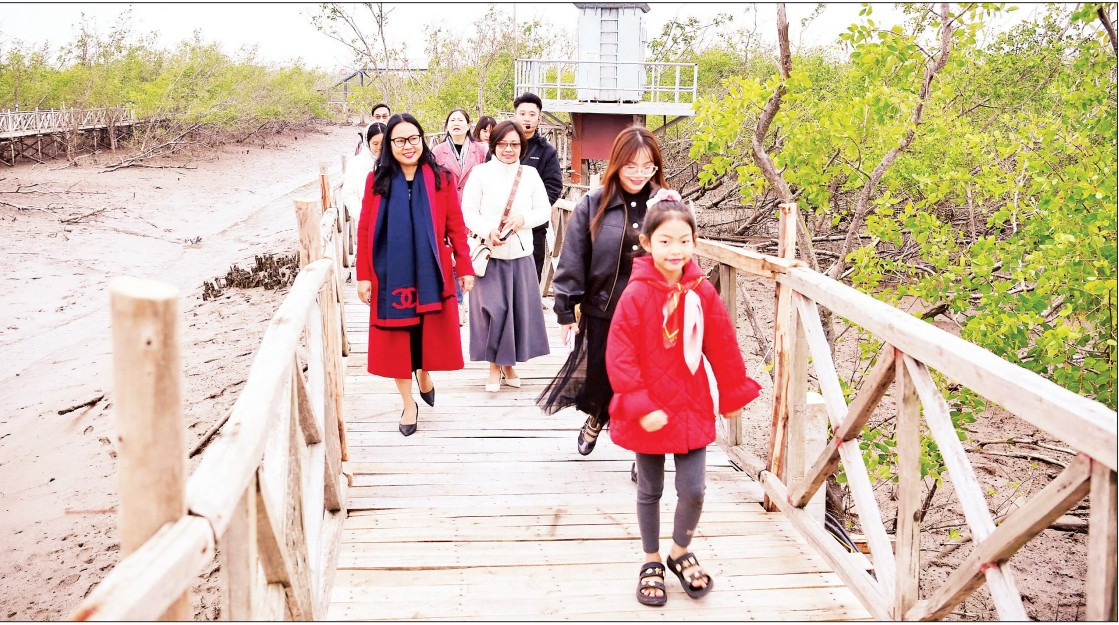Khách du lịch tham quan rừng ngập mặn Đồi Rồng, phường Đồ Sơn, thành phố Hải Phòng