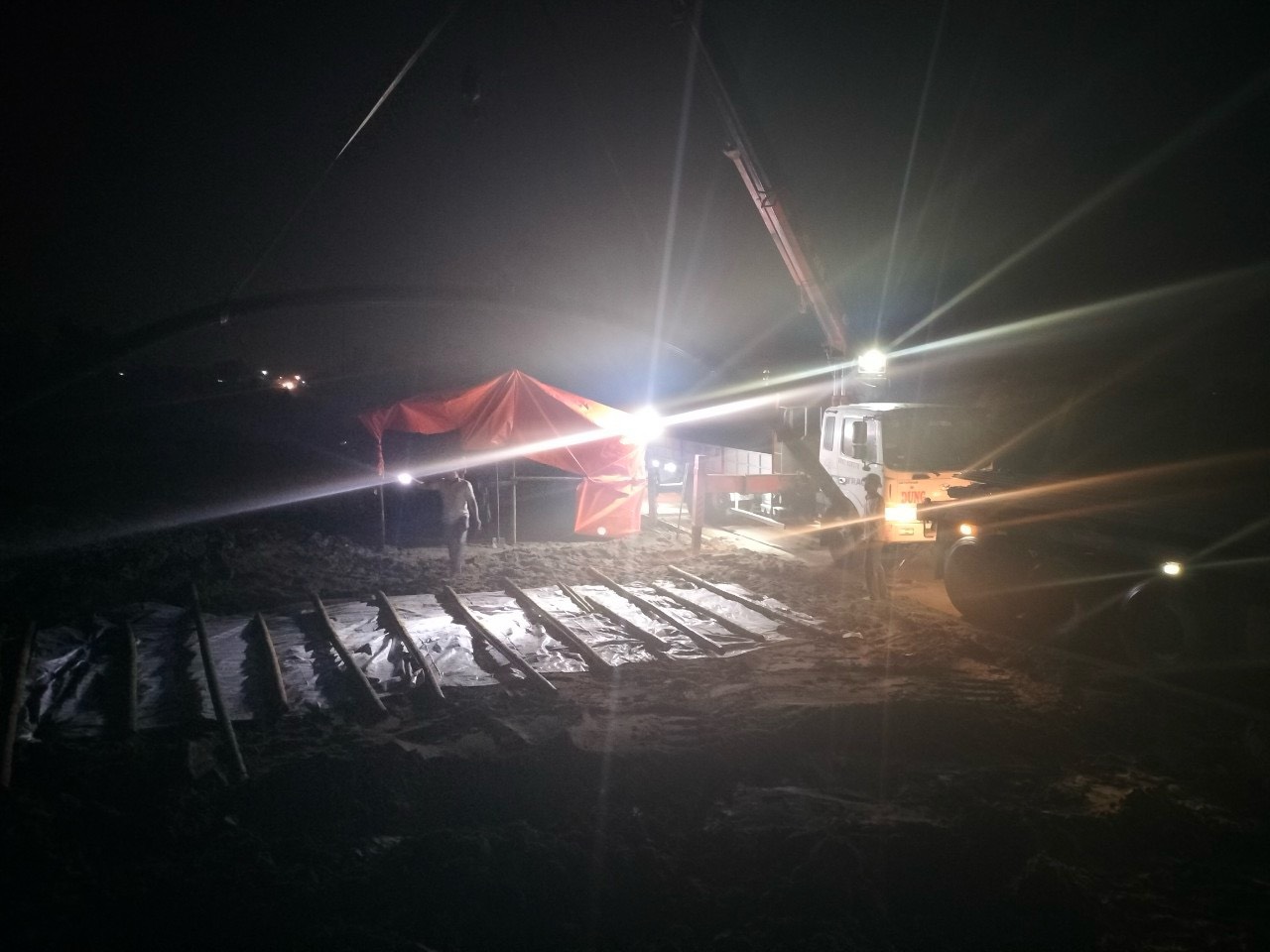 Đối với các vị trí móng bản đã mở móng, các nhà thầu cần nhanh chóng thi công dứt điểm, khi hoàn thành đào móng cần đổ ngay bê tông lót để tránh bị sạt lở do trời mưa hoặc do người dân lấy nước đổ ải. Sau khi hoàn thành đổ bê tông lót cần triển khai ngay công tác buộc thép, đổ bê tông móng.