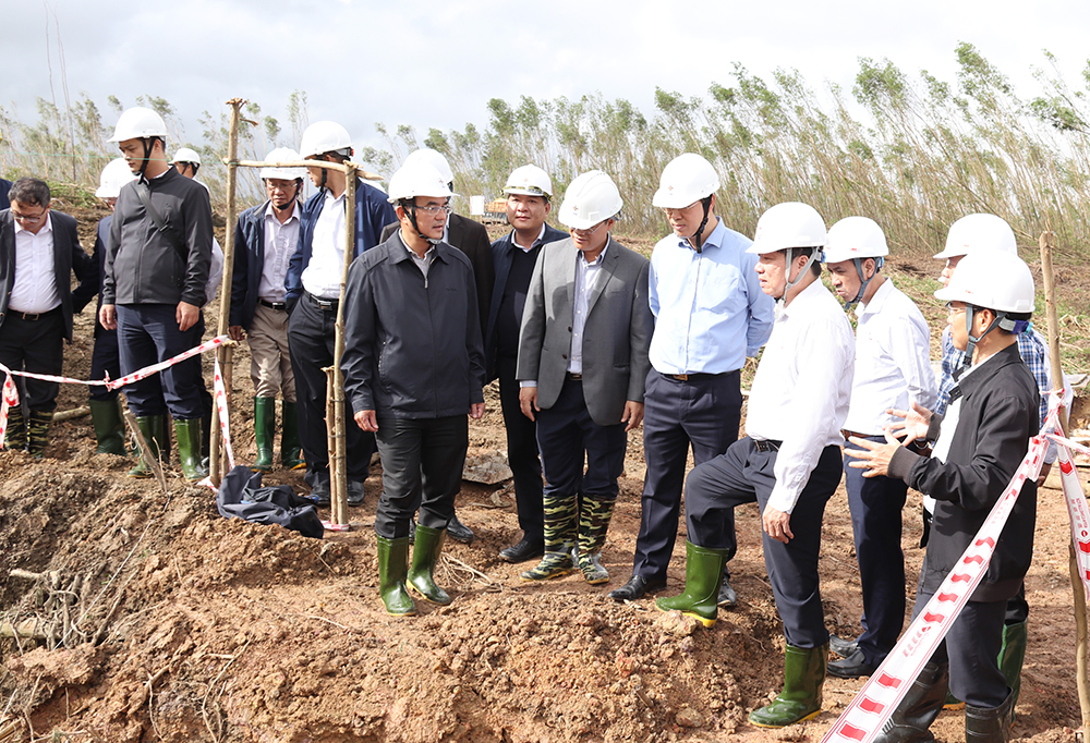 Kiểm tra thực địa tại vị trí cột 09 đường dây Dốc Sỏi – Pleiku 2 tại xã Bình Minh, huyện Bình Sơn, tỉnh Quảng Ngãi và tại phần mở rộng ngăn lộ TBA 500kV Dốc Sỏi, Chủ tịch HĐTV EVN ghi nhận những nỗ lực của Tổng công ty Truyền tải điện quốc gia (EVNNPT)/Ban Quản lý dự án các công trình điện miền Trung (CPMB) và các đơn vị tham gia thi công xây lắp, tư vấn giám sát tại công trường.