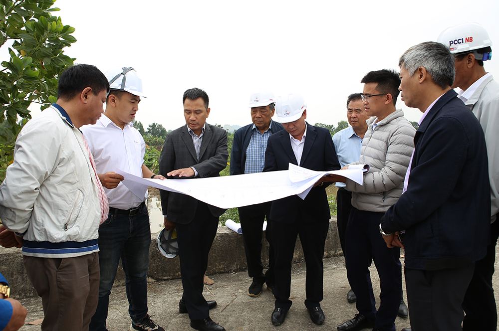 Đoàn công tác nghe báo cáo chi tiết tiến độ thi công gói thầu số 5 dự án đường dây 500kV Nhà máy nhiệt điện Nam Định I – Thanh Hóa