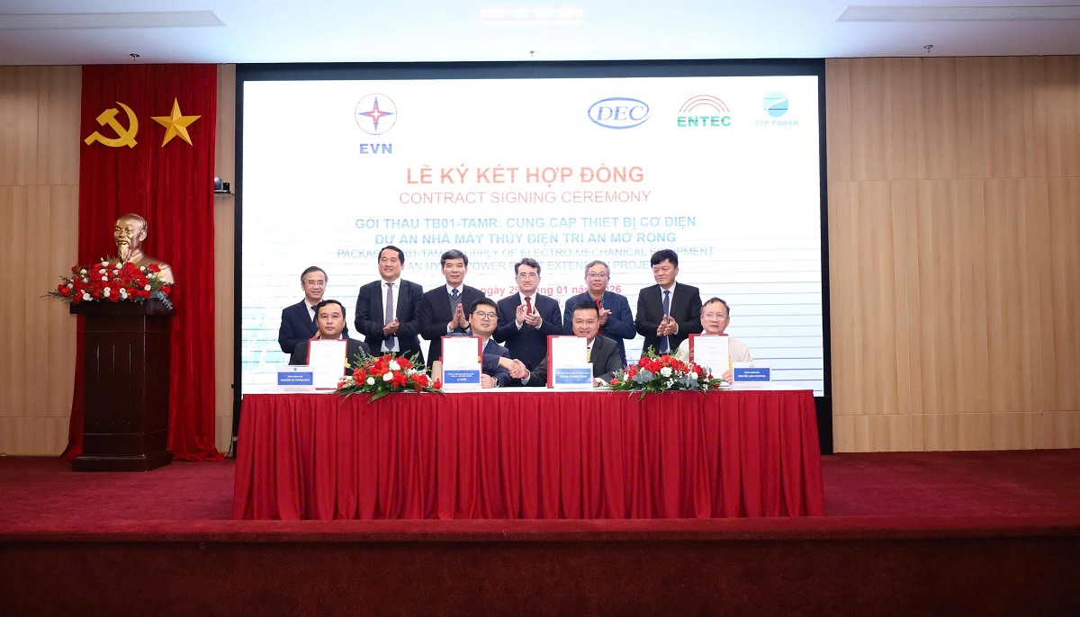 Cụ thể, Tập đoàn Điện lực Việt Nam (EVN) và liên danh DEC-ENTEC-TTP (gồm 3 thành viên: Dongfang Electric International Corporation; Công ty CP ENTEC Kỹ thuật năng lượng; Công ty CP Kỹ thuật năng lượng Tâm Thành Phát) tổ chức Lễ ký kết hợp đồng gói thầu TB01-TAMR: cung cấp thiết bị cơ điện - dự án Nhà máy thủy điện Trị An mở rộng, tỉnh Đồng Nai.