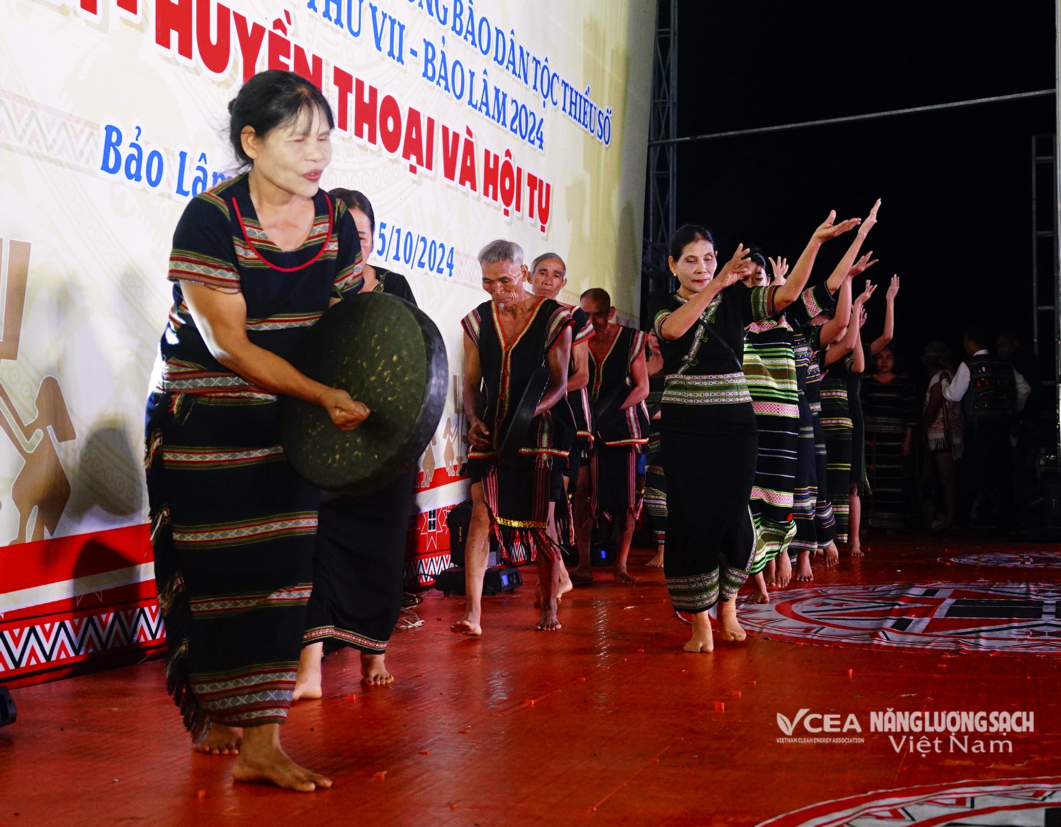 Dàn "chiêng 6" do hai nghệ nhân dân tộc Churu thể hiện trong sự hòa âm sắc của trống và kèn bầu