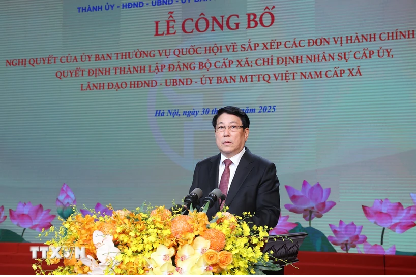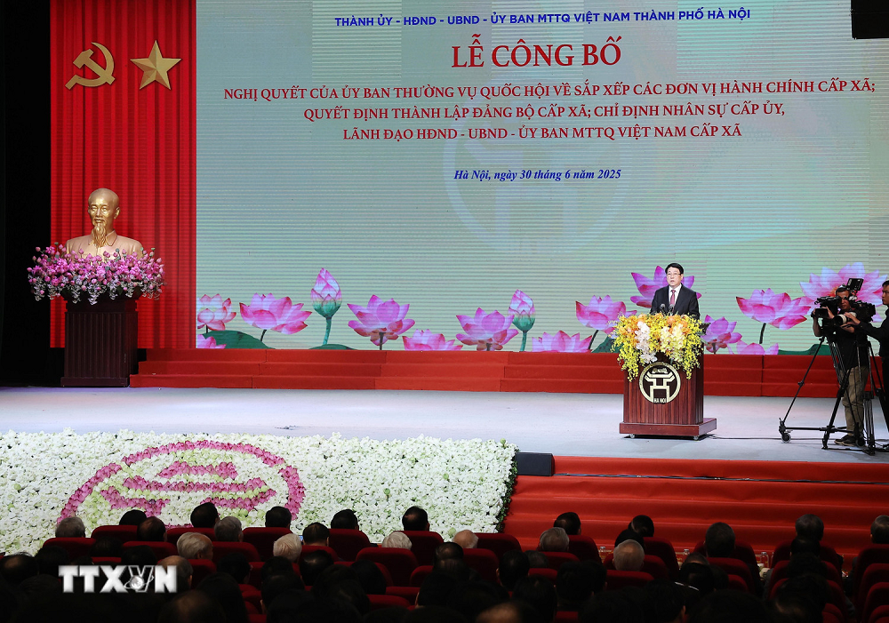 Sáng 30/6, tại Cung Văn hóa Lao động Hữu nghị Việt - Xô, Thành ủy, HĐND, UBND, Ủy ban MTTQ Việt Nam thành phố Hà Nội tổ chức Lễ công bố nghị quyết của Ủy ban thường vụ Quốc hội về sắp xếp các đơn vị hành chính cấp xã; các quyết định của thành phố Hà Nội về việc triển khai tổ chức đơn vị hành chính cấp xã.
