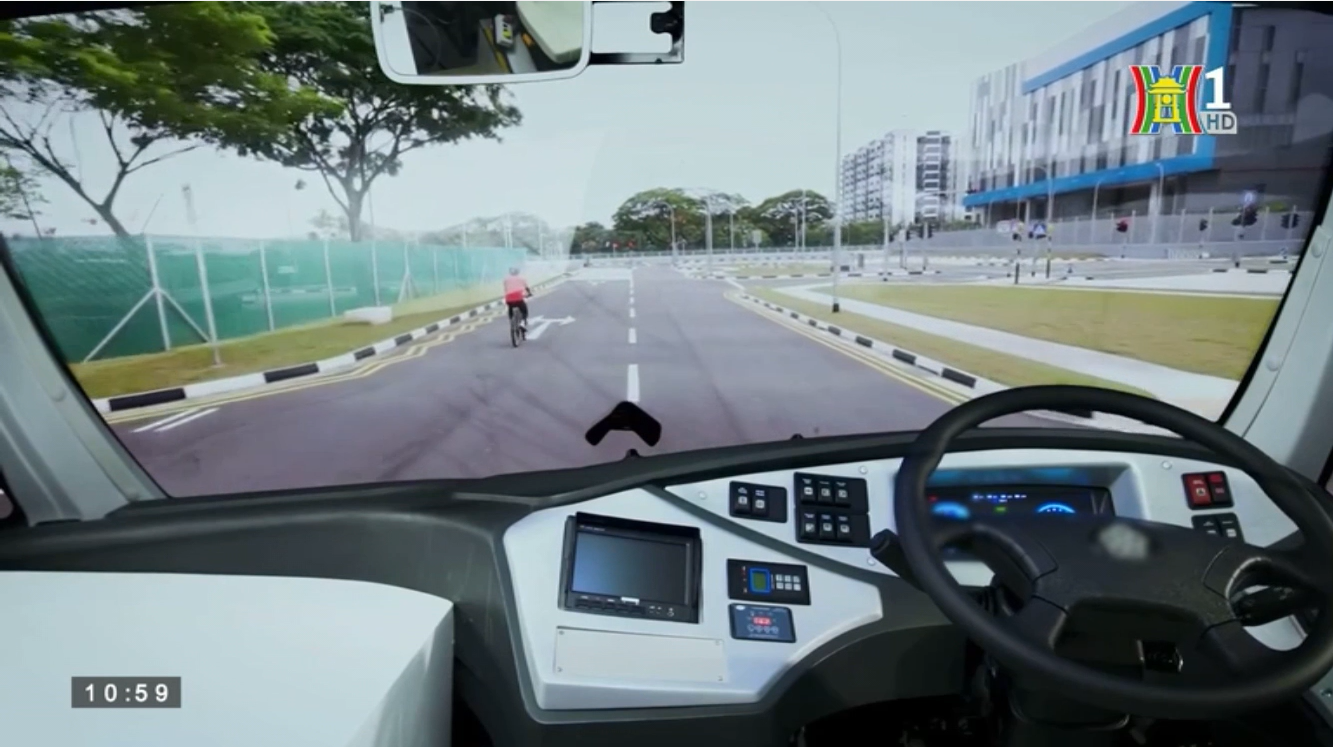 (Xe buýt điện tự lái đầu tiên trên thế giới được hãng xe Volvo của Thụy Điển kết hợp với Đại học Công nghệ Nanyang chuẩn bị được đưa vào vận hành tại Singapore)