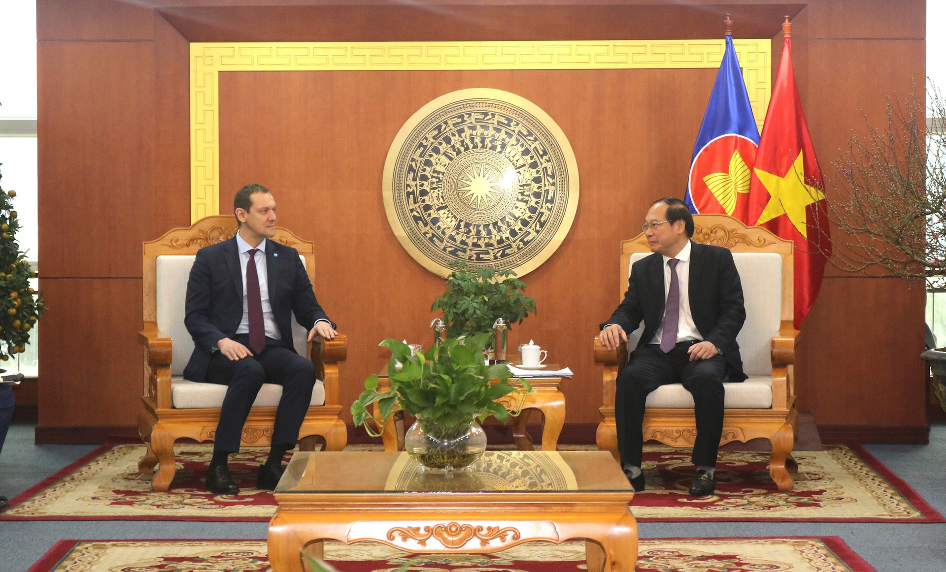Thứ trưởng Lê Công Thành làm việc với ông Oleg Skufinskiy, Trưởng Cơ quan Đăng ký nhà nước, Địa chính và Bản đồ Liên bang Nga