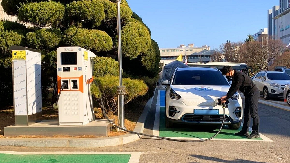 Một người đang sạc xe tại Hàn Quốc