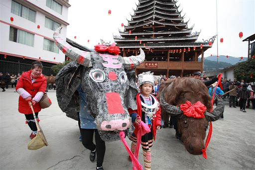 Đến nay, nhiều địa phương trên đất nước Trung Quốc vẫn duy trì tục Trâu xuân: người ta đắp hình con trâu bằng đất hoặc làm bằng giấy cao 4 thước, dài 8 thước, tượng trưng cho 4 thời, 8 tiết. Con trâu mô hình này được rước rất long trọng kèm theo các hoạt động vui chơi như ca hát, múa, rước đèn lồng... gọi là xuân ngưu (trâu mùa xuân), sau đó lấy roi vừa quất vào nó vừa đọc lời chúc an lành. Các dân tộc thiểu số khác còn tổ chức nhiều lễ như lễ Ngưu vương, cúng Ngưu vương để cầu con, phòng bệnh, đuổi tà ma...