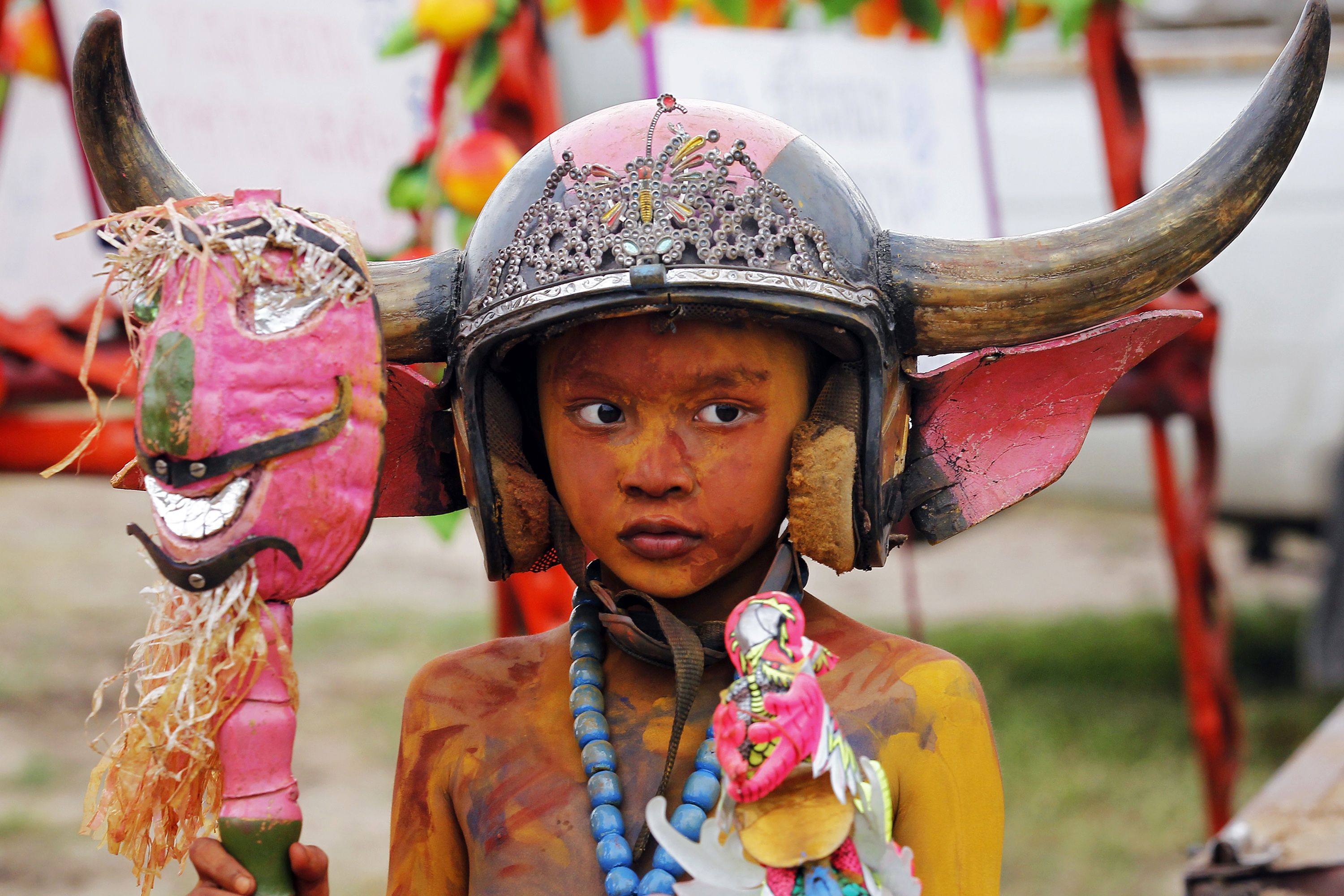 Các “trâu nước” này là những người đàn ông bôi nhọ bằng than hoặc dầu, đeo sừng và chuông quanh cổ. Họ diễu hành, nhảy múa hào hứng qua các con đường làng để thực hiện nghi lễ cầu mưa và cầu sự bảo vệ của thần linh. Thông thường, chỉ những người đàn ông hóa trang thành trâu nước, loài động vật linh thiêng và mạnh mẽ nhất trong nông nghiệp, tượng trưng cho quyền lực.