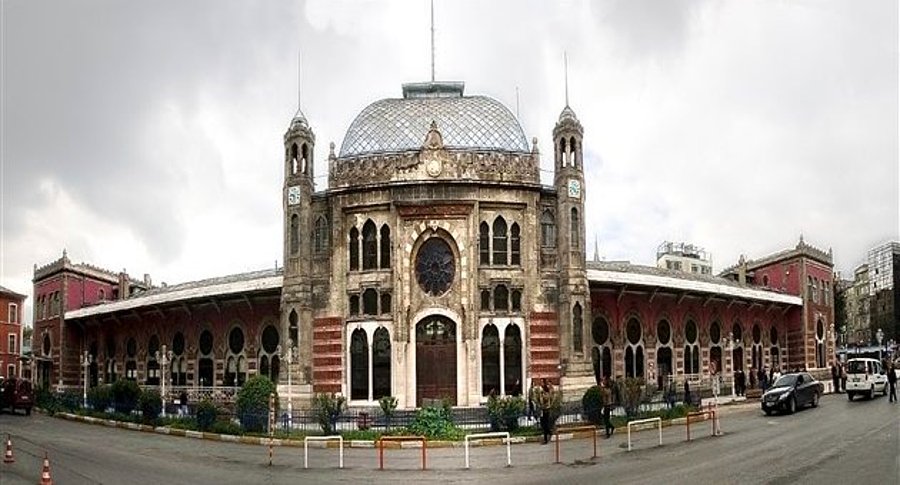 Bạn có thể bắt gặp thiết kế phương Đông, như tháp đồng hồ khổng lồ, cửa sổ kính màu và nhiều thứ khác nữa trong nhà ga yên tĩnh ở Istanbul, Thổ Nhĩ Kỳ.