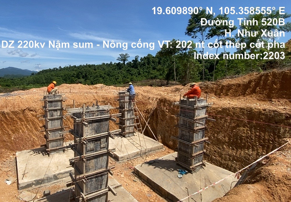 Thi công đúc móng vị trí 202 đường dây 220kV Nậm Sum – Nông Cống