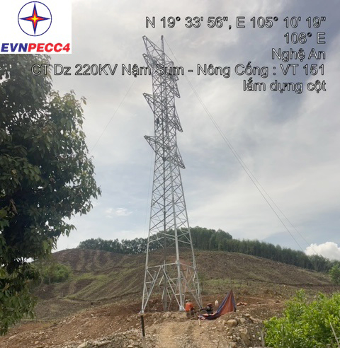 Thi công dựng cột vị trí 151 đường dây 220kV Nậm Sum – Nông Cống
