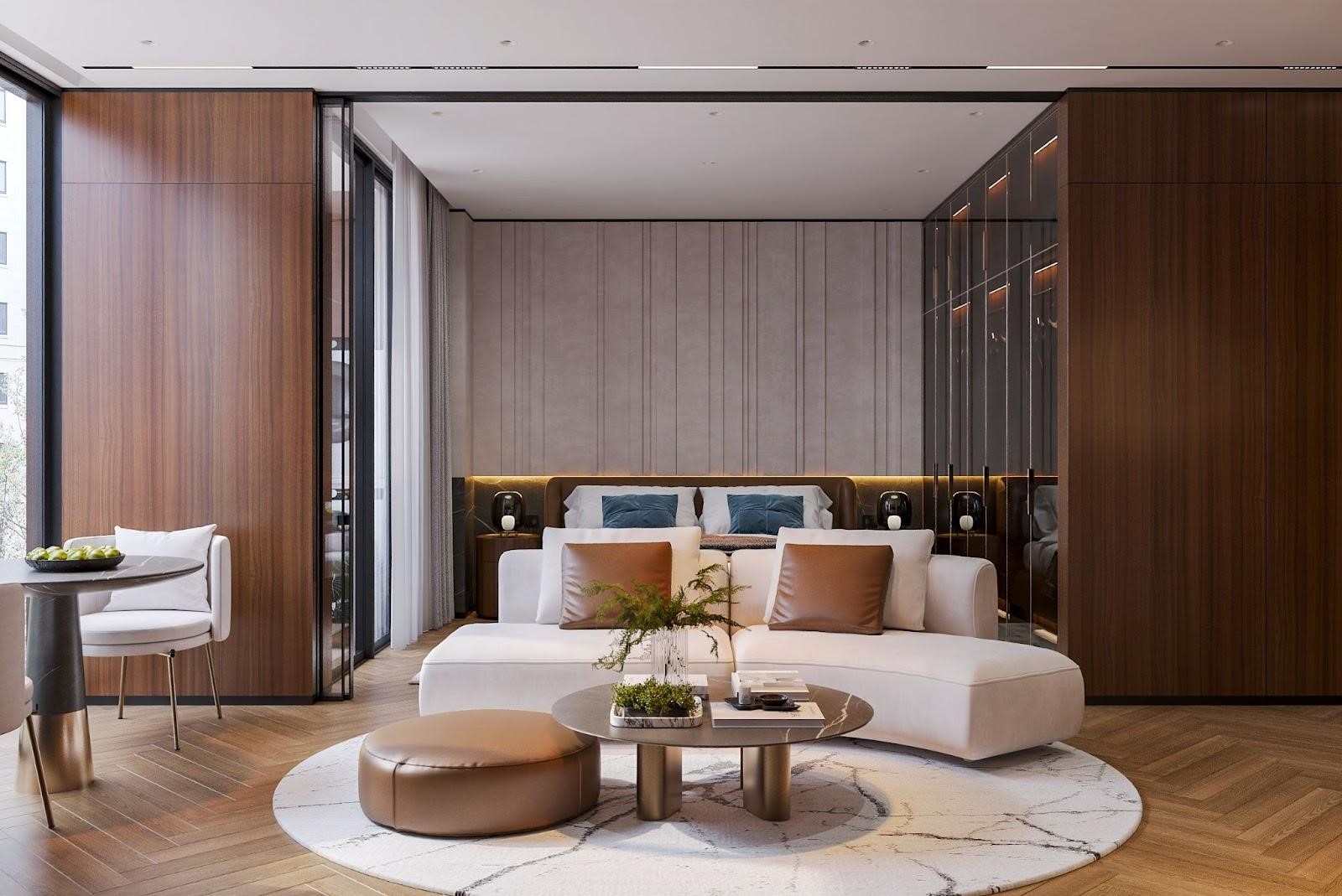 Căn Studio được thiết kế tối ưu công năng sử dụng, trang bị nội thất cơ bản đến từ các thương hiệu châu Âu danh giá, mang đến chuẩn sống tiện nghi và hiện đại