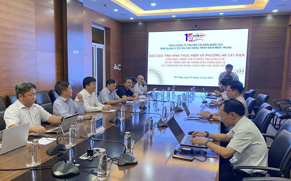 Tại Đà Nẵng, Phó Tổng giám đốc Tổng công ty Truyền tải điện Quốc gia (EVNNPT) Lưu Việt Tiến vừa có buổi làm việc với Trung tâm Điều độ hệ thống điện miền Trung, Ban quản lý dự án các công trình điện miền Trung (CPMB) và Công ty Truyền tải điện 2 về việc thi công hạng mục “Nâng cấp hệ thống điều khiển bảo vệ TBA 220kV Huế” thuộc tiểu dự án phát triển lưới điện thông minh - dự án "Hiệu quả lưới điện truyền tải" (TEP) vay vốn Ngân hàng Thế giới (WB).