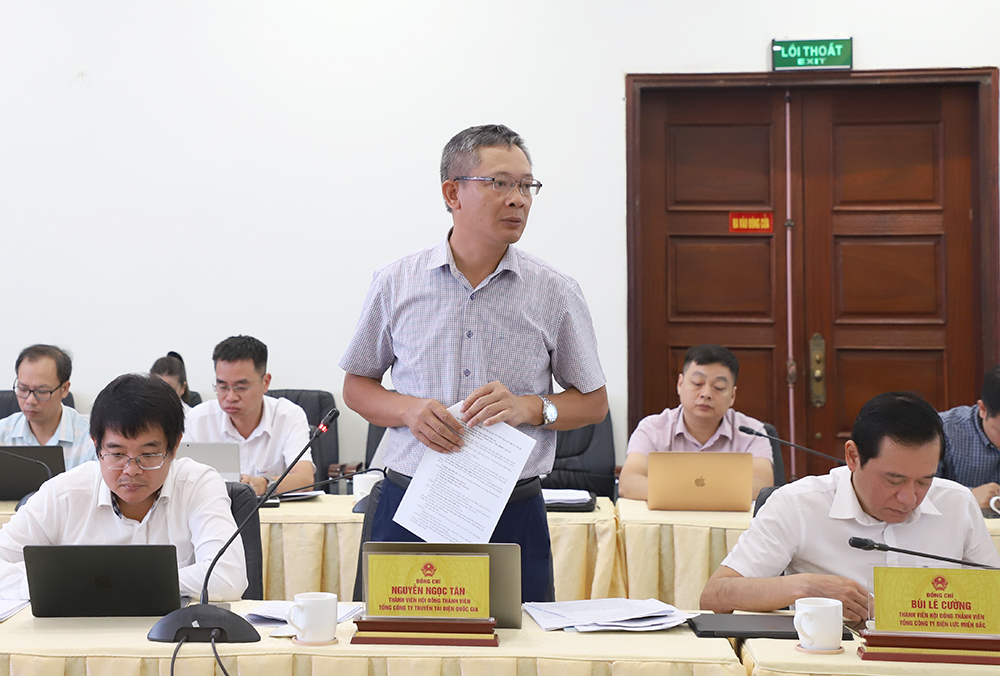 Ông Nguyễn Ngọc Tân, Thành viên HĐTV EVNNPT báo cáo và nêu các kiến nghị tại buổi làm việc