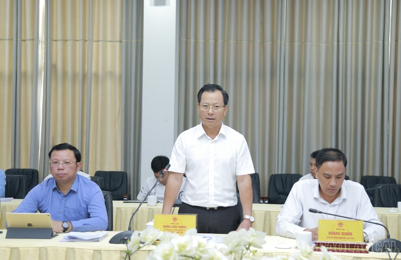 Phó Chủ tịch Thường trực UBND tỉnh Lào Cai Hoàng Quốc Khánh phát biểu kết luận tại buổi làm việc