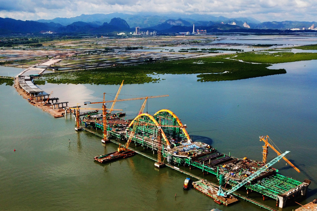 Phần cầu chính kết cấu gồm 5 nhịp liên tục vòm ống thép nhồi bê tông. Trong đó, nhịp chính dài 90m đã tiến hành hợp long vào tháng 5/2021; hệ vòm ống thép nhồi nhịp 60m hiện cũng đã hoàn thành.