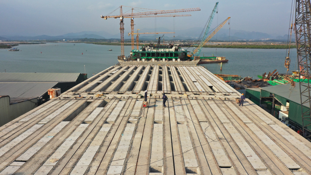 Hạng mục cầu dẫn đã hoàn thành đúc dầm super T, tổ chức lắp được 10/15 nhịp, thi công mặt cầu được 8/15.