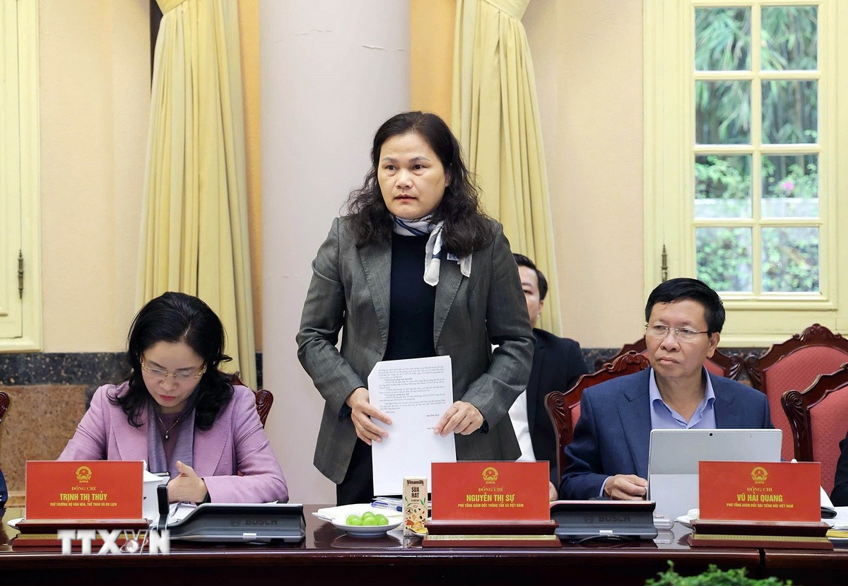 Phó Tổng Giám đốc Thông tấn xã Việt Nam Nguyễn Thị Sự phát biểu tại phiên họp
