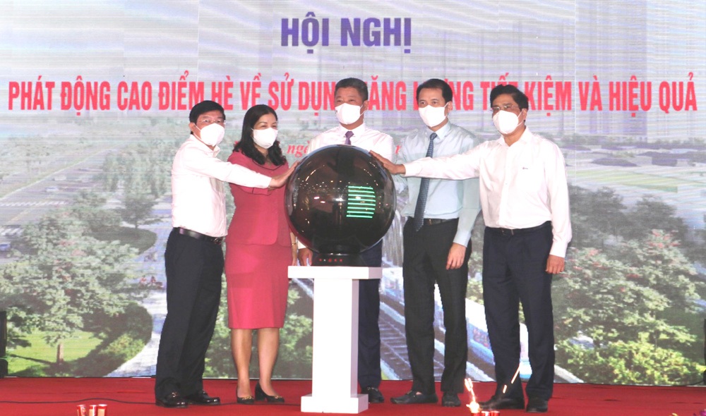 Các đại biểu thực hiện nghi thức phát động cao điểm hè về sử dụng năng lượng tiết kiệm và hiệu quả năm 2022 tại Hà Nội
