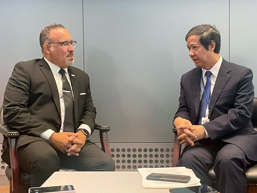 Trao đổi với Bộ trưởng Nguyễn Kim Sơn, Bộ trưởng Miguel Cardona cho biết Bộ Giáo dục Hoa Kỳ luôn sẵn sàng là đối tác với Bộ Giáo dục và Đào tạo Việt Nam; đảm bảo rằng các cơ quan thuộc ngành giáo dục Hoa Kỳ sẽ hợp tác hỗ trợ Việt Nam và thúc đẩy việc hỗ trợ sinh viên Việt Nam đang tìm kiếm cơ hội theo đuổi học tập, cũng như các em học sinh, sinh viên đang theo học tại Hoa Kỳ.