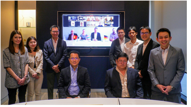 Đại diện Tập đoàn Banpu, Tập đoàn EAB Newenergy GmbH và các đối tác tại buổi lễ ký hợp đồng mua bán được tổ chức online