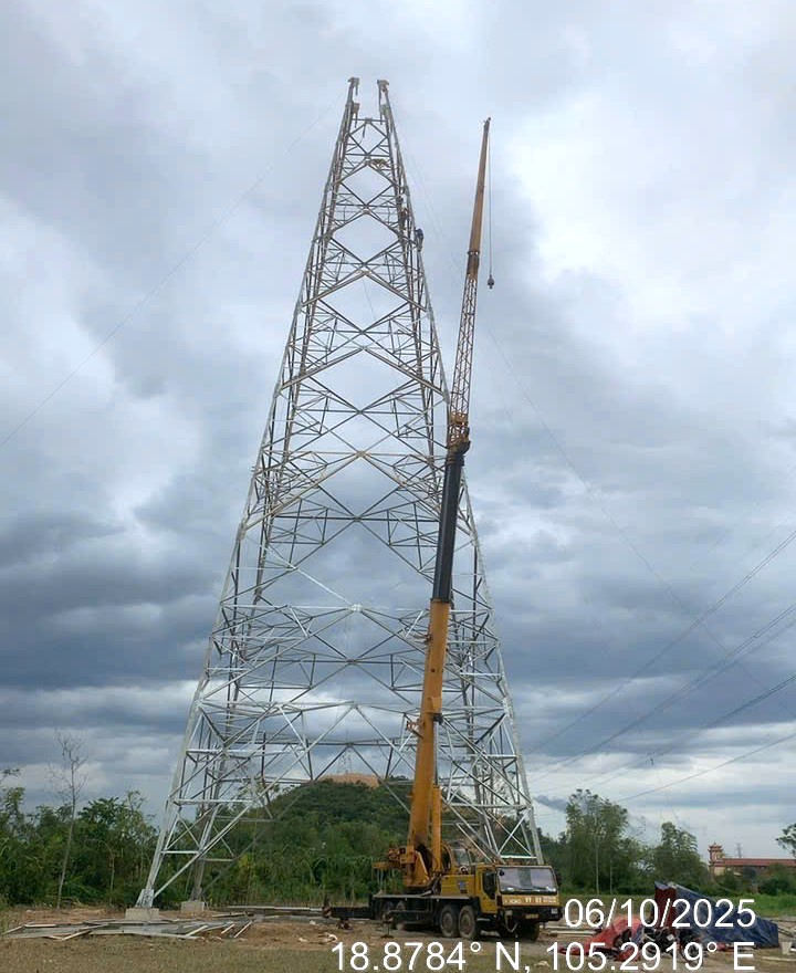 Thi công dựng cột dự án đường dây 220kV Tương Dương – Đô Lương