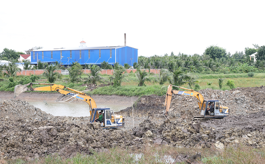 Thi công đào móng vị trí 01 dự án đường dây 220kV Hồng Ngự - Châu Đốc