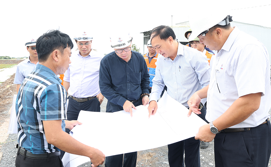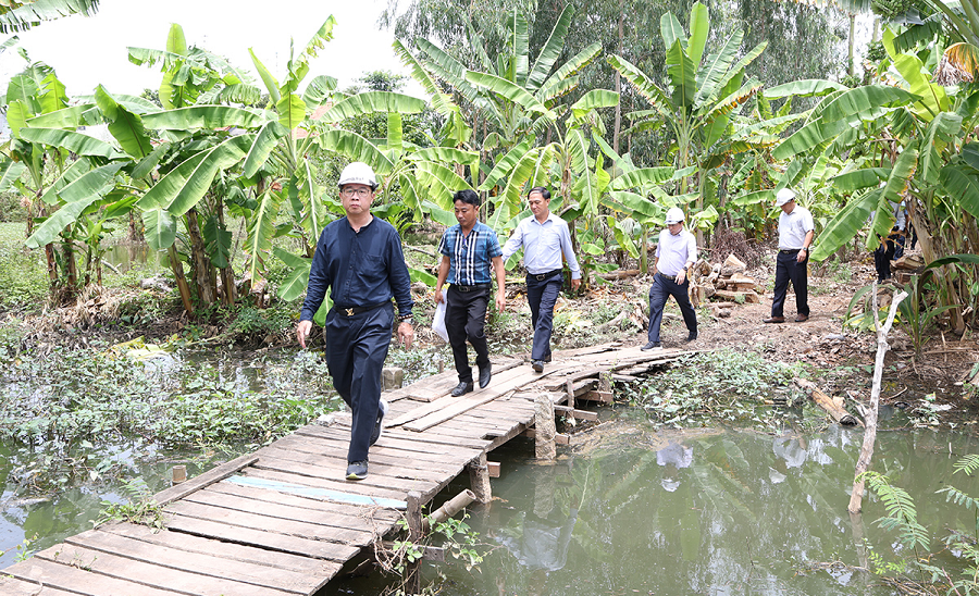 Tổng giám đốc EVNNPT Phạm Lê Phú và đoàn công tác kiểm tra thực địa dự án đường dây 220kV Hồng Ngự - Châu Đốc