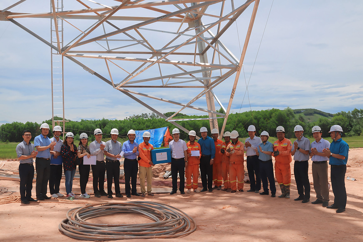 Nhân dịp này, đoàn công tác đã trao tặng các phần quà cho người lao động đang tham gia thi công tại các vị trí cột.