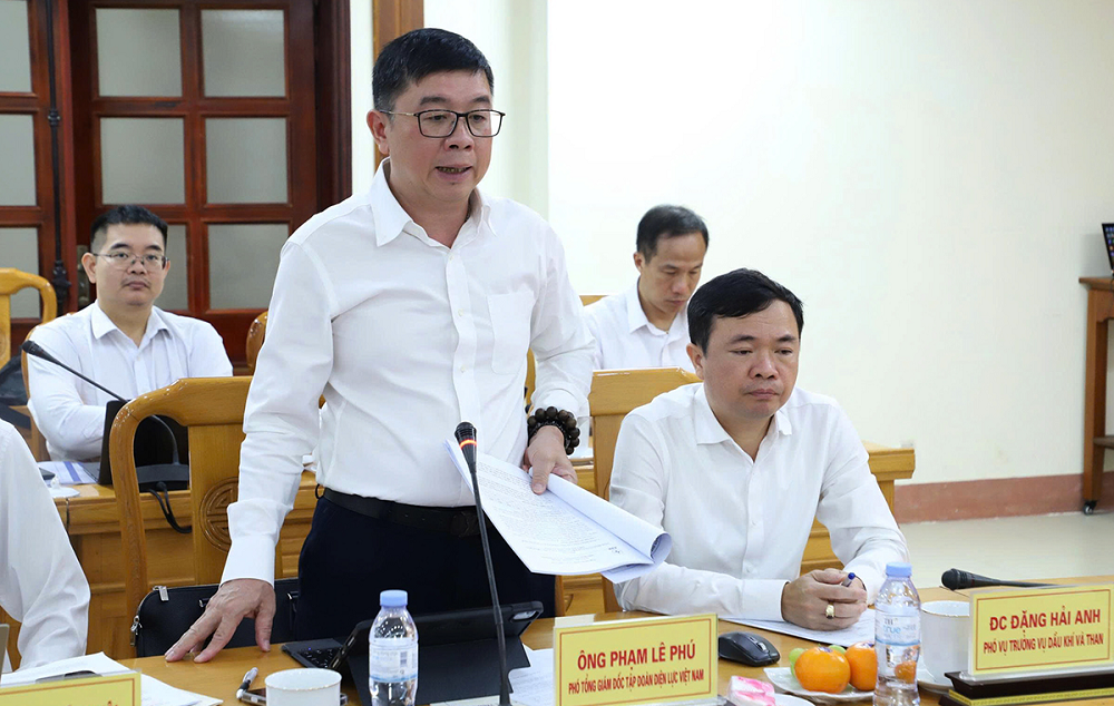 Phó Tổng giám đốc EVN Phạm Lê Phú nêu các kiến nghị tại buổi làm việc