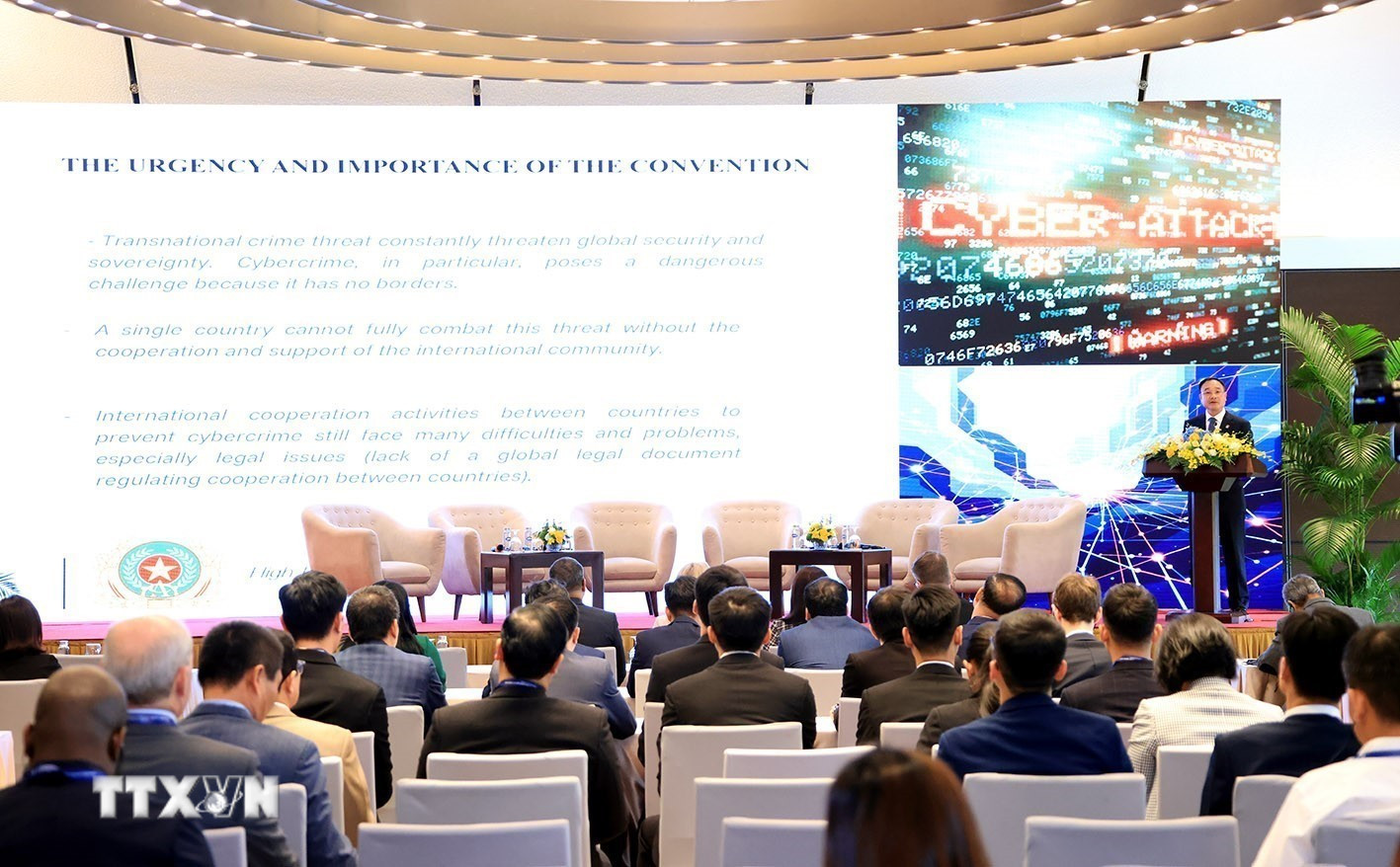 Cùng với đó, Thượng tướng Phạm Thế Tùng cho biết, tại phiên thảo luận toàn thể chiều 25/10, hội nghị đã được lắng nghe 19 phát biểu của đại diện các quốc gia, trong đó các nước đã đề cao vai trò của Công ước như một bước tiến quan trọng trong việc xây dựng khuôn khổ pháp lý toàn cầu đầu tiên nhằm điều phối những nỗ lực chung ứng phó với tội phạm mạng.