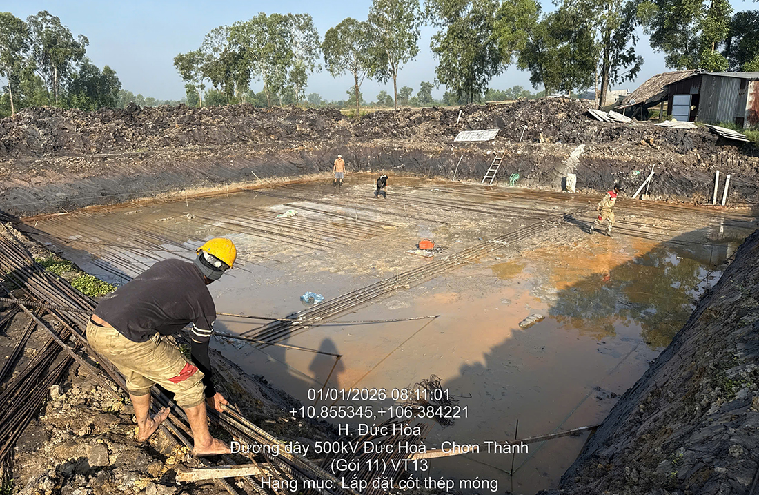 Thi công móng dự án đường dây 500kV Đức Hòa – Chơn Thành đoạn qua tỉnh Tây Ninh