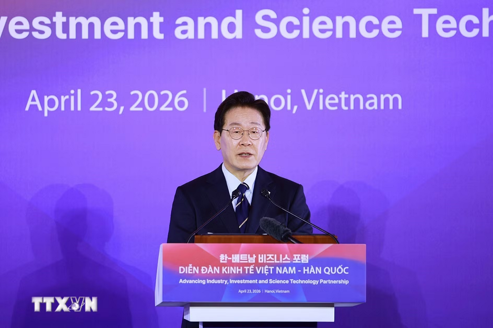 Trong khuôn khổ chuyến thăm cấp Nhà nước tới Việt Nam của Tổng thống Đại Hàn Dân Quốc Lee Jae Myung và Phu nhân, chiều 23/4, tại Hà Nội, Thủ tướng Chính phủ Lê Minh Hưng và Tổng thống Đại Hàn Dân Quốc Lee Jae Myung đã cùng dự Diễn đàn kinh tế Việt Nam - Hàn Quốc có chủ đề “Nâng cao quan hệ đối tác công nghiệp, đầu tư và khoa học công nghệ”.