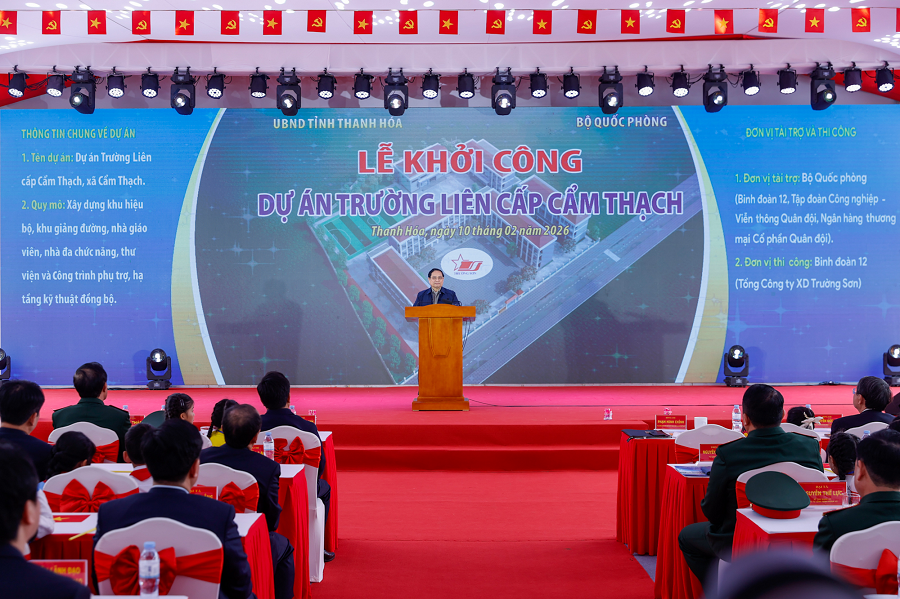 Thủ tướng đề nghị tỉnh Thanh Hóa ưu tiên nguồn lực tập trung xây dựng 6 trường liên cấp đã khởi công năm 2025 để hoàn thành trước ngày 31/8/2026 và chuẩn bị để khởi công 10 trường còn lại; tiếp tục triển khai các công trình này với tinh thần "3 ca 4 kíp", "vượt nắng thắng mưa, không thua bão gió", "ăn tranh thủ, ngủ khẩn trương"… để sớm hoàn thành công trình, bảo đảm tiến độ, chất lượng; thường xuyên theo dõi, kiểm tra, giám sát và chuẩn bị các điều kiện cần thiết để công trình sớm được nghiệm thu, đưa vào sử dụng và phát huy hiệu quả.