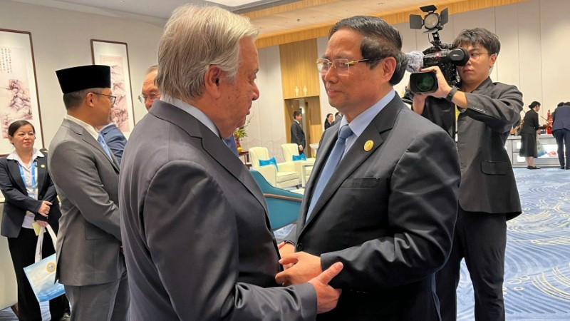 Tại cuộc gặp với Thủ tướng Chính phủ Phạm Minh Chính, Tổng Thư ký Liên Hợp Quốc Antonio Guterres trao đổi về tình hình và những thách thức đa chiều mà thế giới đang phải đối mặt, bày tỏ mong muốn các quốc gia tăng cường hợp tác trong ứng phó với biến đổi khí hậu; chia sẻ về sự cần thiết cải tổ, tinh gọn bộ máy để nâng cao hiệu quả hoạt động của Liên Hợp Quốc.