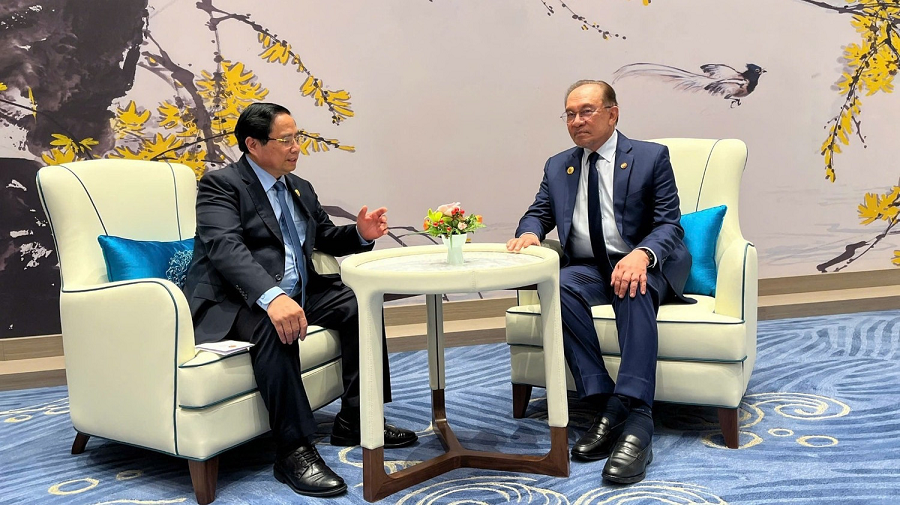 Trong cuộc gặp với Thủ tướng Malaysia Ibrahim Anwar, Thủ tướng Phạm Minh Chính đánh giá cao những nỗ lực của Malaysia trên cương vị Chủ tịch ASEAN trong giải quyết các vấn đề chung tại khu vực; góp phần củng cố đoàn kết và nâng cao uy tín, vai trò trung tâm của ASEAN; mong muốn hai bên tăng cường hợp tác trong lĩnh vực Halal, thương mại gạo, hợp tác biển… Thủ tướng Malaysia đề nghị hai nước đẩy mạnh hợp tác nghề cá; bày tỏ mong muốn đón Thủ tướng Phạm Minh Chính tham dự Hội nghị cấp cao ASEAN tháng 10 tới. Hai bên thống nhất về những biện pháp tăng cường hợp tác, trong đó, nhất trí sớm thông qua Chương trình hành động triển khai quan hệ Đối tác chiến lược toàn diện Việt Nam - Malaysia giai đoạn 2025 - 2030, thúc đẩy hợp tác trong các lĩnh vực quốc phòng, năng lượng, du lịch, giao lưu nhân dân.