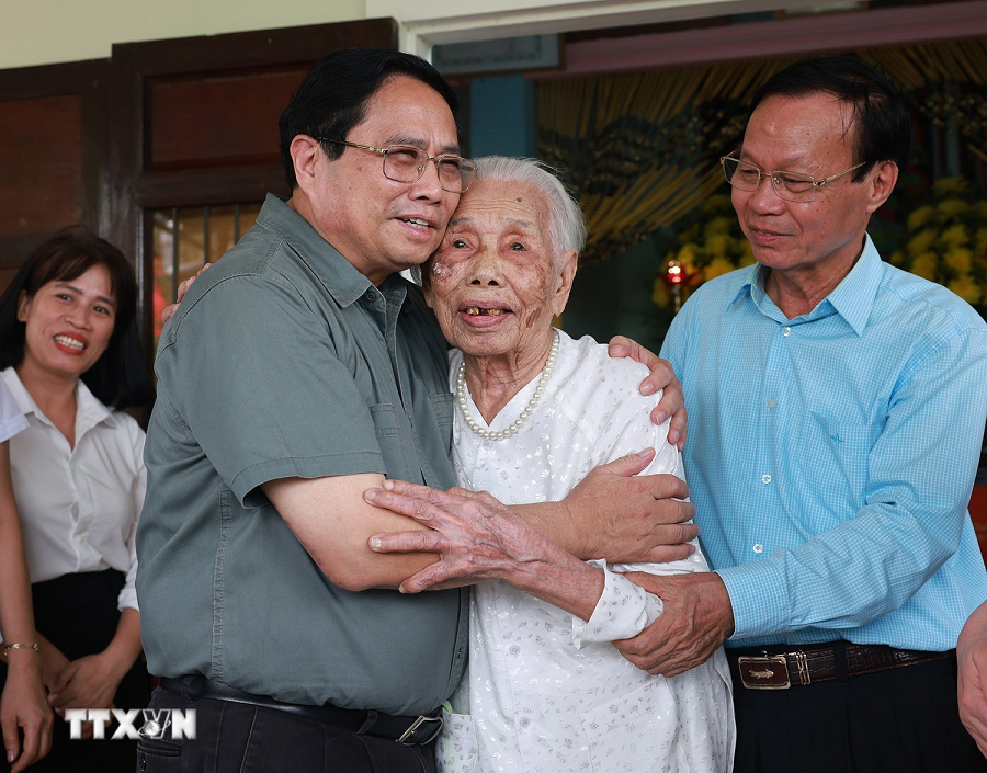 Thủ tướng Phạm Minh Chính đã thăm Mẹ Việt Nam anh hùng Đào Thị Vui, 102 tuổi, có chồng và 1 con duy nhất là liệt sỹ; hiện đang sinh sống tại thôn Thượng Xá, xã Hải Lăng, tỉnh Quảng Trị.