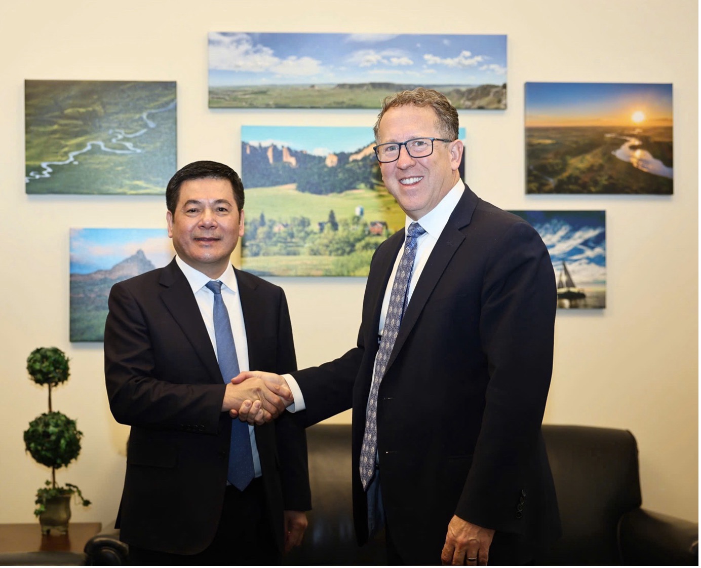 Bộ trưởng Bộ Công Thương Nguyễn Hồng Diên làm việc với Hạ nghị sĩ Adrian Smith (bang Nebraska, Đảng Cộng hòa). (Ảnh: moit.gov.vn)