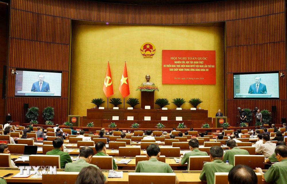 Sáng 13/4, tại Hà Nội, Bộ Chính trị, Ban Bí thư Trung ương Đảng đã tổ chức Hội nghị toàn quốc nghiên cứu, học tập, quán triệt và triển khai thực hiện Nghị quyết Hội nghị lần thứ hai Ban Chấp hành Trung ương Đảng khóa XIV.